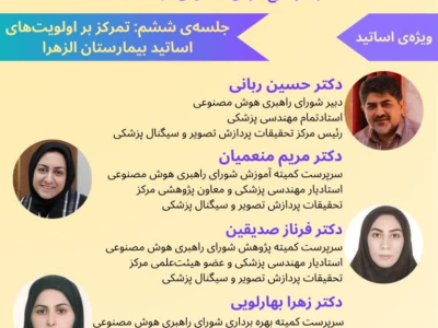 جلسه ششم از سلسله نشست های تعریف پایان نامه مشترک با موضوع هوش مصنوعی در سلامت: تمرکزبراولویتهای بیمارستان الزهرا (س)